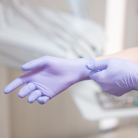 清潔な環境で安心して治療を受けていただけるよう、感染対策を徹底しています。ハンドピースを含めた治療に使用するすべての器具は、毎回滅菌処置を行なっています。また治療中の飛沫を吸引する「口腔外バキューム」や、院内の給水路に微生物が繁殖しないようにする「水消毒システム」も導入し、清潔で安全な環境づくりに努めています。